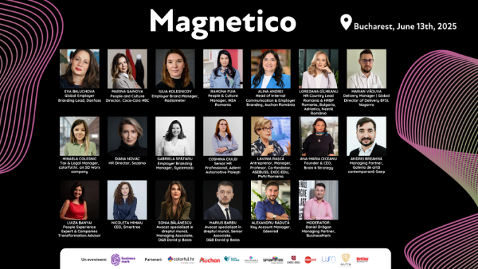 După edițiile locale din Craiova, Iași, Pitești și Cluj-Napoca, proiectul „MAGNETICO. How to attract and retain talents improving employer branding and creating meaningful HR practices” ajunge pe 13 iunie 2025 la București. Organizată de BusinessMark la JW Marriott Bucharest Grand Hotel, conferința va reuni 19 lideri din companii naționale și internaționale, ce vor discuta despre cum pot organizațiile să se mențină atractive, „magnetice” în ochii candidaților.